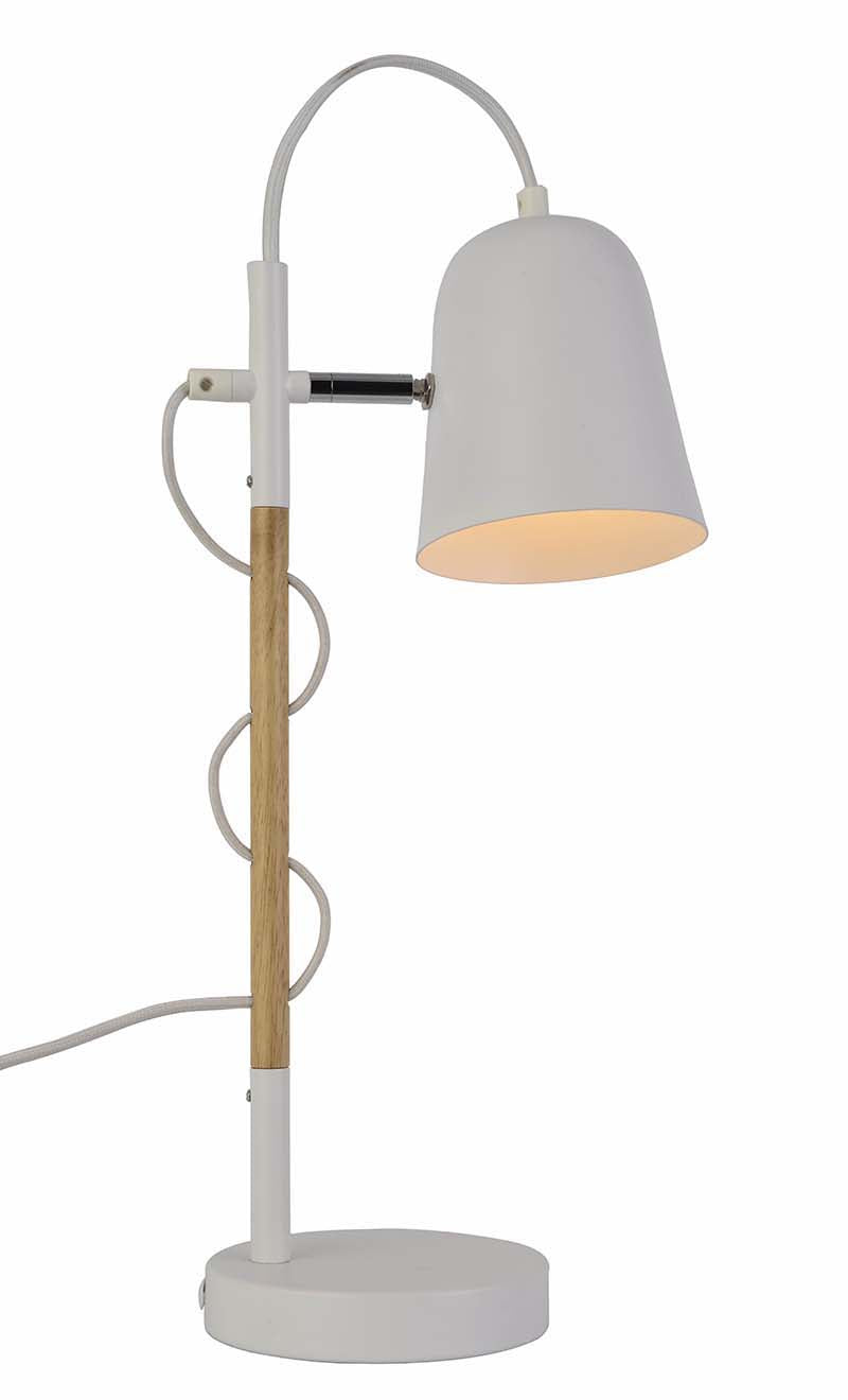 Ez az asztali lámpa tökéletesen mutat skandináv stílusú terekben. Egyszerű formatervezése harmonikus ötvözete a fém és fa részleteknek. Fekete és fehér változatban elérhető.