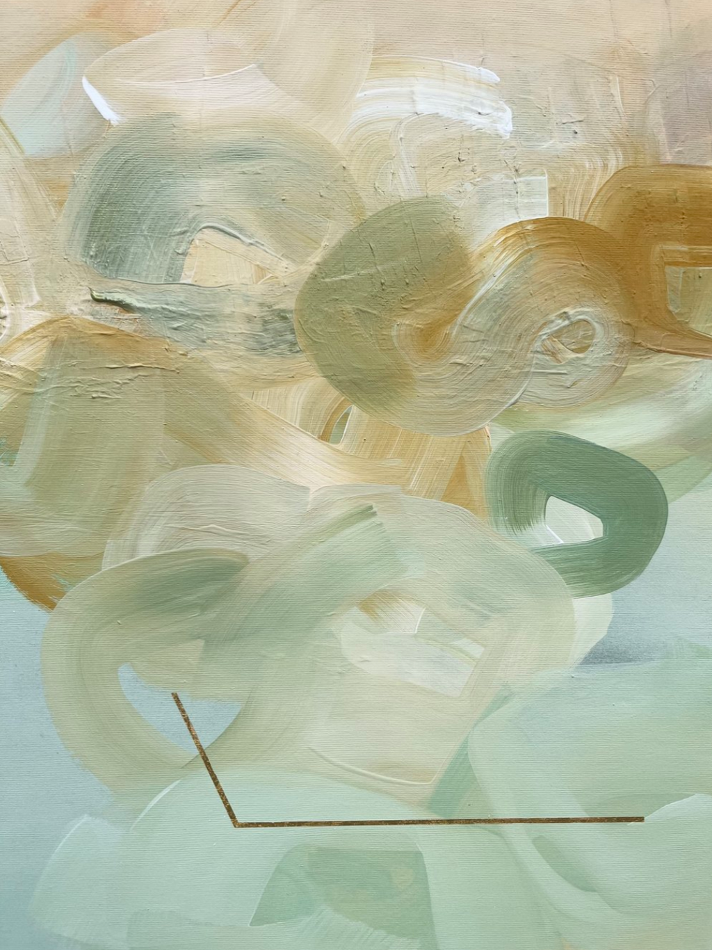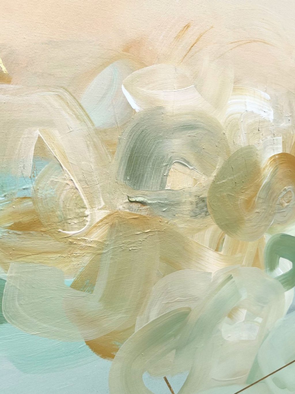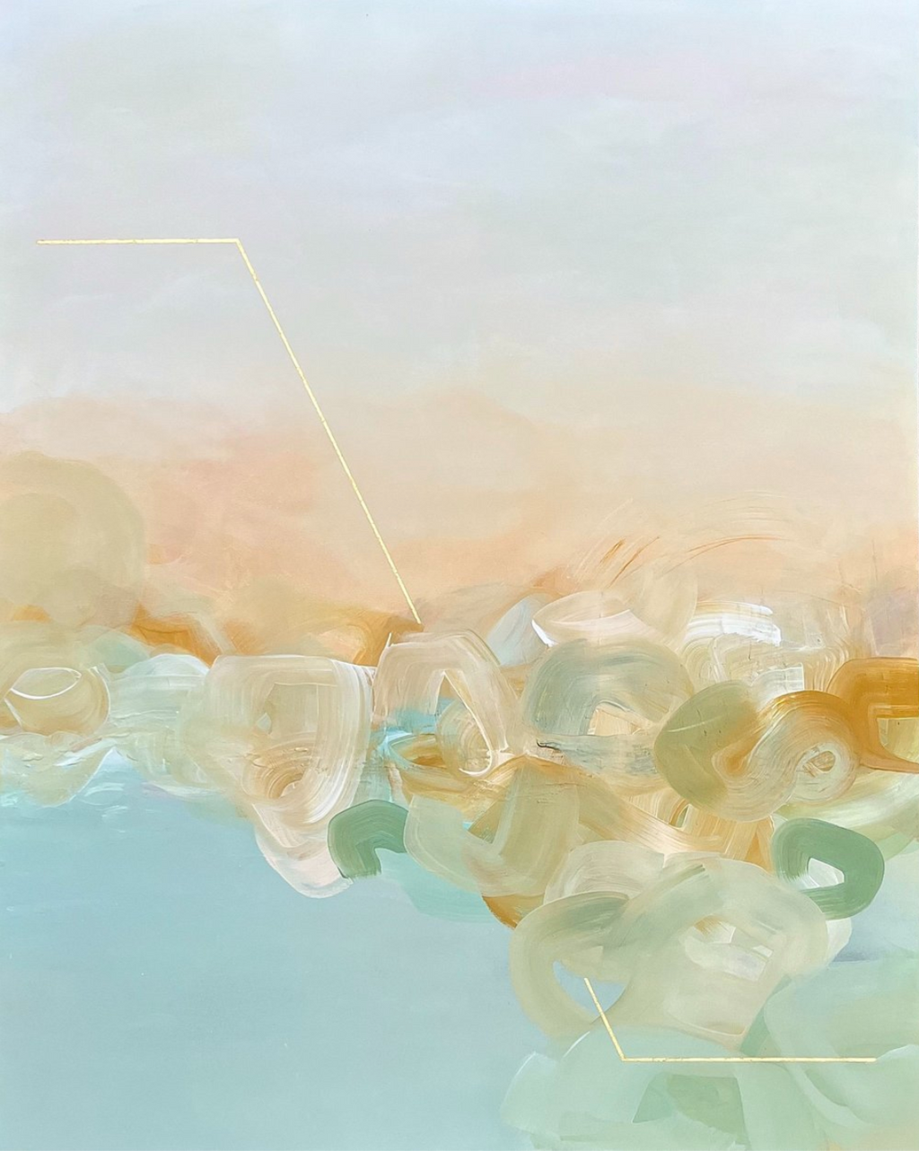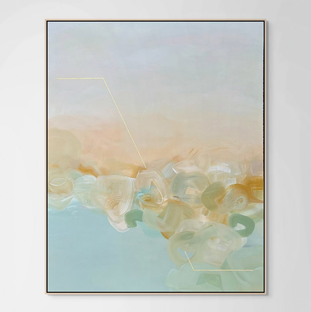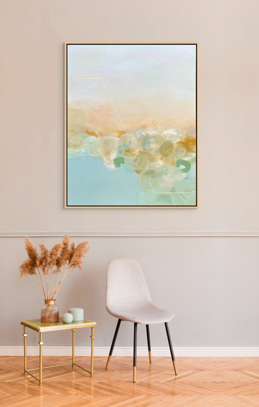 A friss finom színek és nyugodt formák egyvelege ez az egyedi festmény.