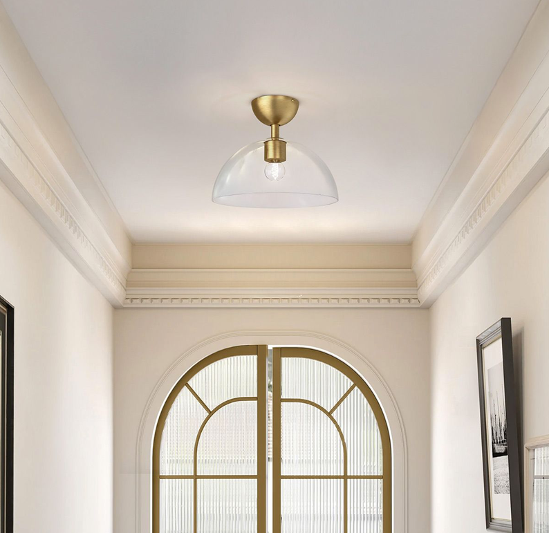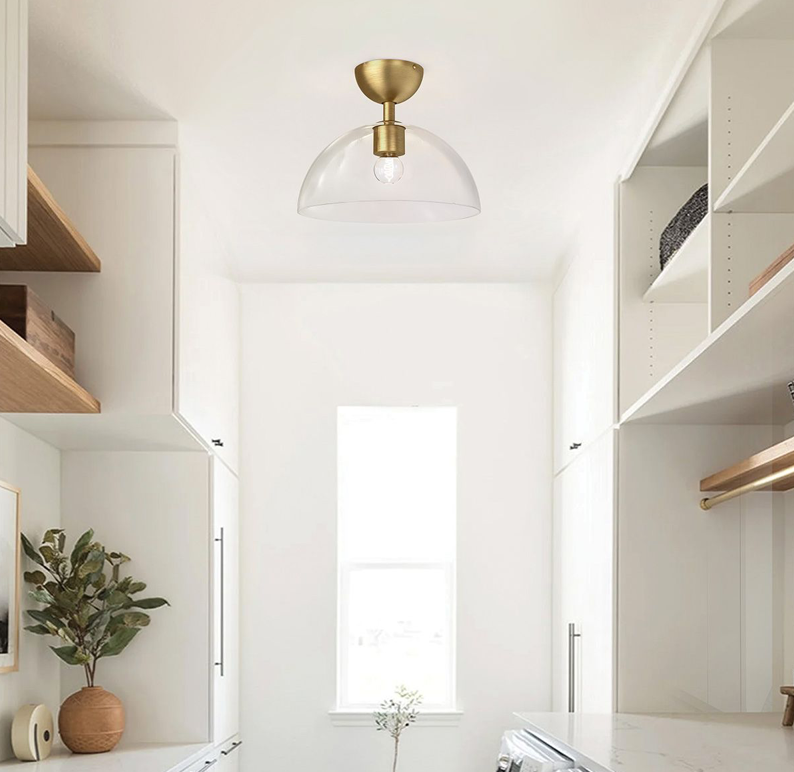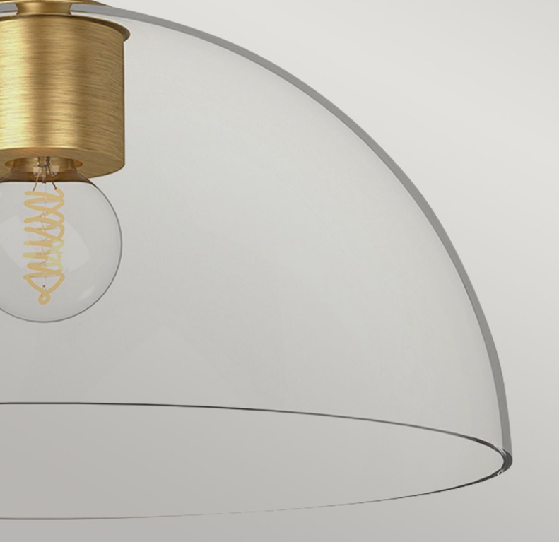 A Jude kollekció a letisztult geometriai formák és az organikus részletek harmonikus kombinációja, amely minden belső térbe művészi hangulatot visz. A brushed gold (szálcsiszolt arany) acéltest kifinomult megjelenést kölcsönöz a lámpának, míg az átlátszó üvegbúra klasszikus félgömb formája homokóra-szerű sziluettet alkot. Ez az 1 égős mennyezeti lámpa ideális kisebb helyiségekbe, ahol stílusos, mégis visszafogott fényforrásra van szükség.
