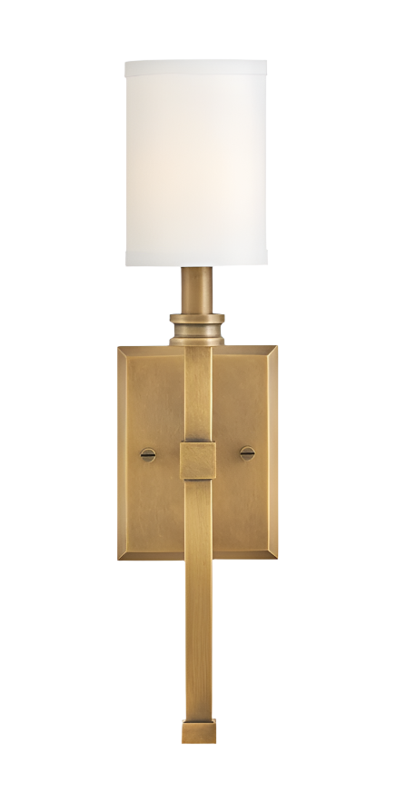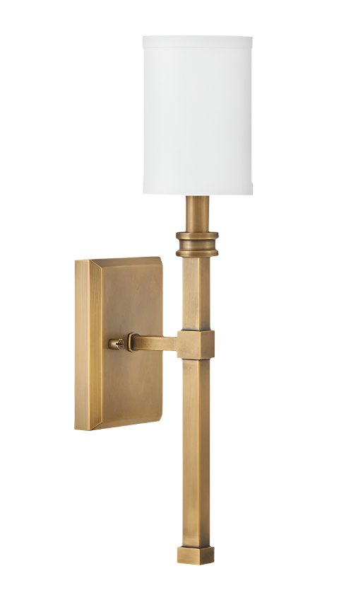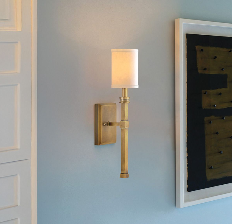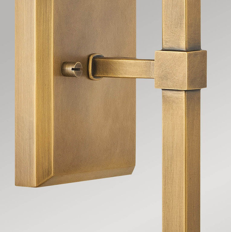A Moore fali lámpa a klasszikus fáklyás falikar modern újragondolása. Négyzetes szára és metszett falitartója kifinomult részletekkel és precíz kidolgozással társul. Az elefántcsontszínű vászonbúra felső és alsó szegélye finoman szabott, öltöztetett megjelenést kölcsönöz. A Heritage Brass felület elegáns fényt visz az enteriőrbe – legyen szó nappaliról, hálóról vagy előszobáról.