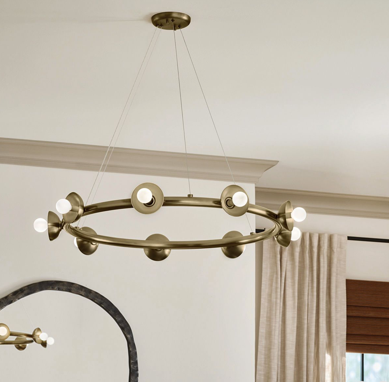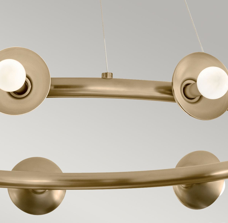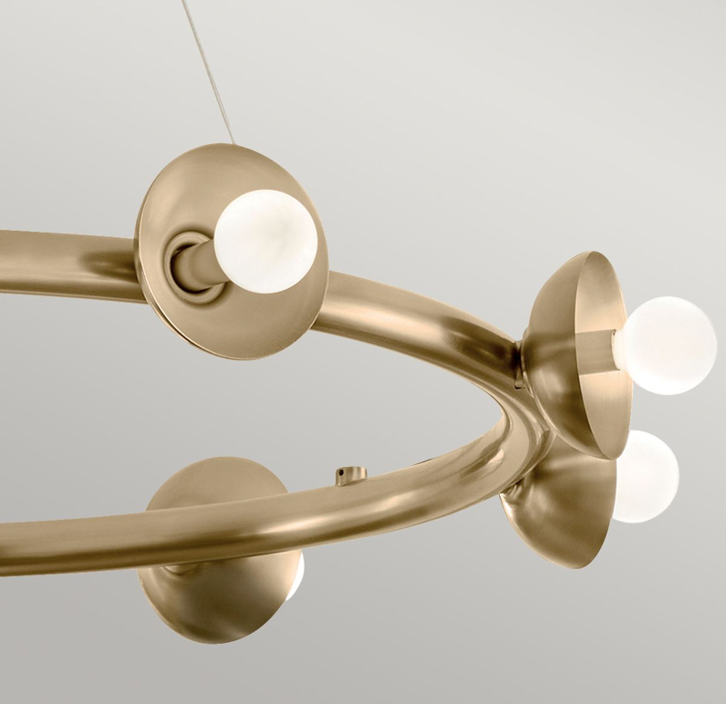 A Palta kör csillár letisztult, karcsú kialakítása és elegáns Champagne Bronze felülete a világítást művészi szintre emeli. A modern, de időtálló megjelenés többféle enteriőr stílushoz is illeszkedik. Az izzók cseréjével könnyen változtatható a lámpa hangulata.