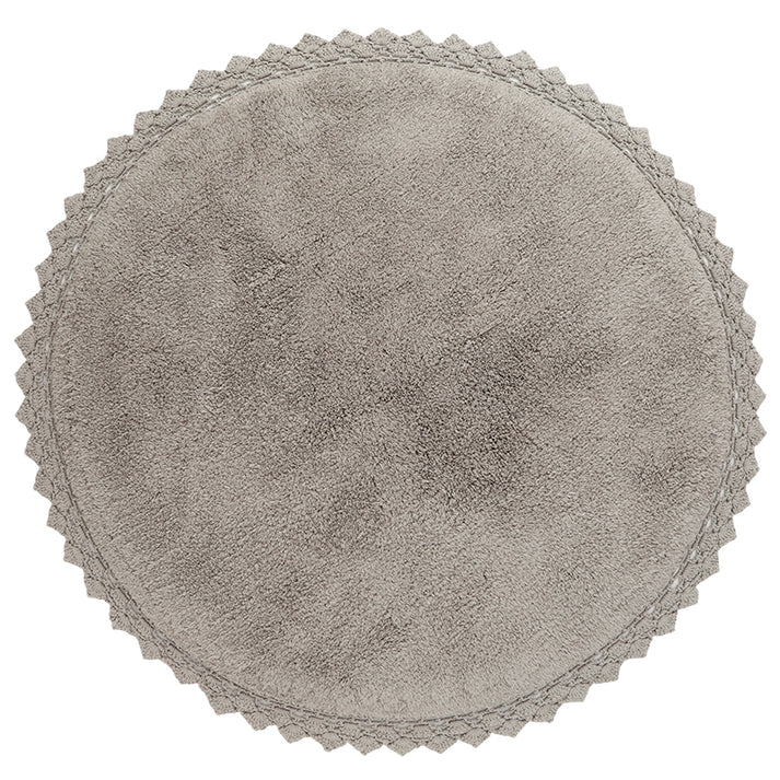 A PERLA egy puha és kényelmes kerek szőnyeg. Különösen finom csipkehatású horgolt keret fogja körbe. Mosógépben mosható a maximális karbantartás érdekében, a PERLA 4 színben kapható. Finom színei és ennek a különösen kellemes anyagnak a puhasága bármilyen dekorációhoz passzol. Ez a szép kerek és diszkrét természetes anyagú szőnyeg 100% pamutból készült, és OEKO-TEX tanúsítvánnyal rendelkezik .