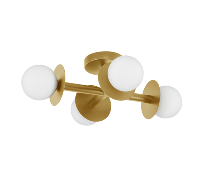 A Pielo design mennyezeti lámpa modern, elegáns megjelenést biztosít bármely helyiségnek. Az arany színű, többágú fém vázhoz finoman kidolgozott üvegburák társulnak, amelyek stílusosan szórják a fényt. Ideális nappaliba, étkezőbe vagy hálószobába. A lámpa fényforrást nem tartalmaz, külön vásárolható.